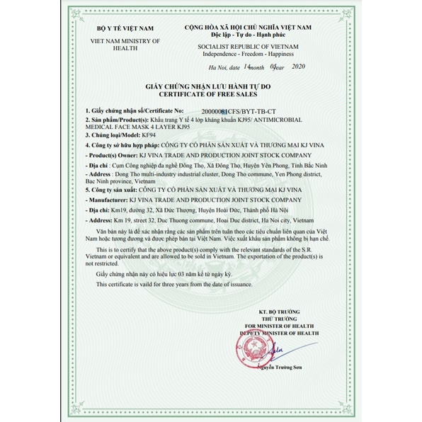 Đơn vị/đóng gói sản phẩm: Túi 10 chiếc khẩu trang KJ Mask màu trắng/xanh/xám/đen Công dụng: bảo vệ hệ hô hấp khỏi bụi bặm từ môi trường, ngăn ngừa bụi mịn và siêu mịn do cấu tạo 4 lớp kháng khuẩn >99% *Khẩu trang KJ MASK do công ty KJVINA sản xuất, công ty đã có kinh nghiệm 6 năm ở Việt Nam trong ngành sản xuất khẩu trang. Sản phẩm khẩu trang đạt các tiêu chuẩn chứng nhận của Bộ Y Tế cấp phép. Hiện tại sản phẩm đã có mặt tại Đức, Nhật, Ba Lan và Mỹ. *THÔNG TIN SẢN PHẨM: - Sản phẩm: Khẩu trang 4 lớp KJMASK - Sản xuất và phân phối: Công ty cổ phần sản xuất và thương mại KJ Vina - Nhà máy chuẩn ISO 13485:2016 - Chất liệu: Vải không dệt và vải kháng khuẩn Đức BFE > 99% - Màu sắc: Xanh Nhạt - Đầy đủ chứng từ kiểm định bộ y tế Việt Nam, giấy phép lưu hành tự do CFS, kiểm định CE, FDA *ƯU ĐIỂM CỦA KHẨU TRANG KJ MASK: - Dễ thở, thiết kế thời trang - Chất liệu vải không dệt cao cấp ko kích ứng da mặt đối với người có da nhạy cảm *HƯỚNG DẪN BẢO QUẢN: - Bảo quản nơi khô ráo thoáng mát - Tránh nhiệt độ cao (trên 40°C hoặc 104°F) *Đáp ứng tiêu chuẩn về sản xuất trang thiết bị y tế của bộ y tế Việt Nam và đạt tiêu chuẩn xuất khẩu Mỹ *Sỉ, lẻ, cộng tác viên giá tốt vui lòng liên hệ qua inbox #gianhangchinhhang #khautrangphongdich #kjmask #kjvina #khautrang #chongbuimin #khautranghanquoc